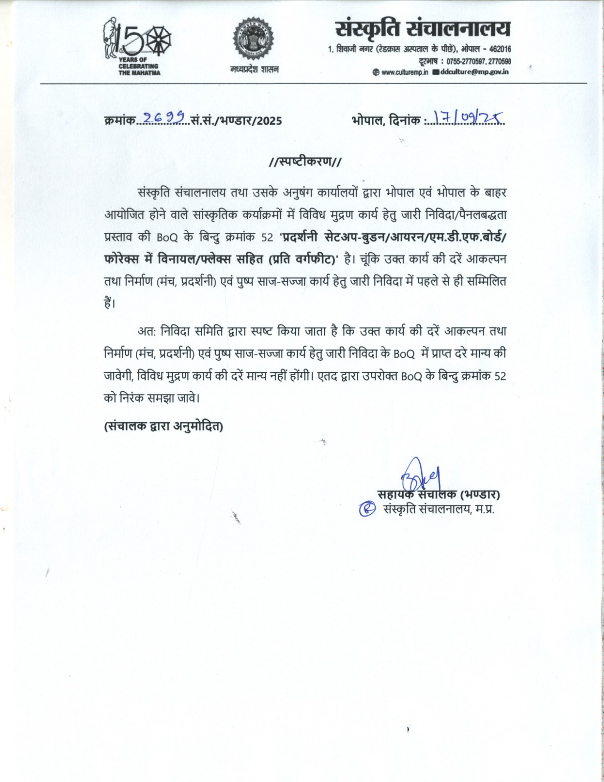 विशेष चयनित कलाकारों साहित्य मनीषियों को राज्य शासन द्वारा संस्थापित विभिन्न सम्मानों से सम्मानित करना, शासकीय कार्य व्यवहार में हिंदी भाषा के अधिकाधिक उपयोग का प्रचार-प्रसार, प्रोत्साहन करना, जिले से सम्बंधित सभी महत्वपूर्ण प्रासंगिक जानकारियों का संग्रहण कर जिला गजेटियर के रूप में प्रकाशन करने के साथ राज्य की कला संस्कृति व साहित्य का संरक्षण कर उसे प्रोत्साहन देना संस्कृति संचालनालय के प्रमुख कार्य हैं।